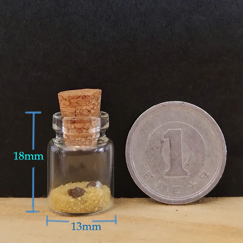 小さな小さな本物の星屑(ギベオン隕石の端っこ)と砂を入れたものです。